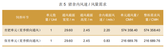 第一,明確豬舍內(nèi)風(fēng)速/風(fēng)量需求,如表5所示。