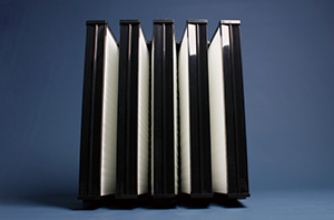 CFGW V-BANK型高效過濾器采用V型結構設計,增大通風量的同時提高了容塵量,提高了濾網(wǎng)使用壽命;過濾效率涵蓋F7-H14中、高兩個過濾等級;濾材為超細玻璃纖維濾紙,具有穩(wěn)定的過濾效率;主體框架為ABS注塑成形,帶法蘭,可選裝側護網(wǎng)。