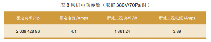 第四,根據(jù)風(fēng)機(jī)馬達(dá)所處工況的電氣參數(shù),評估是否有超載的可能,如表8所示。