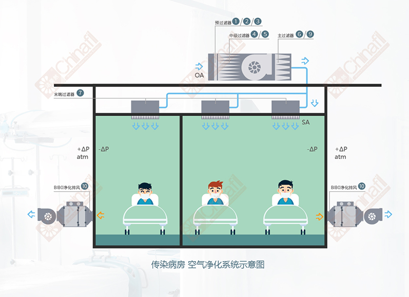 傳染病房空氣過濾系統(tǒng)原理: