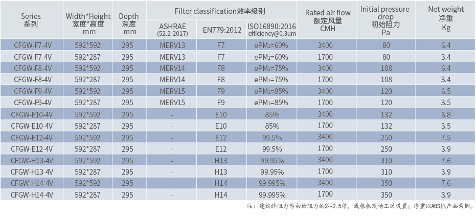 W”型(V-BANK)玻璃纖維過濾器——CFGW,采用V型結(jié)構(gòu)設(shè)計(jì),增大通風(fēng)量的同時(shí)提高了容塵量,提高了濾網(wǎng)使用壽命;空氣過濾效率涵蓋F7-H14中、高兩個(gè)過濾等級;因過濾效率穩(wěn)定可靠、適用性強(qiáng)、使用壽命長等優(yōu)點(diǎn),廣泛應(yīng)用在各類型的送風(fēng)系統(tǒng)中,承擔(dān)著主過濾器的重任。